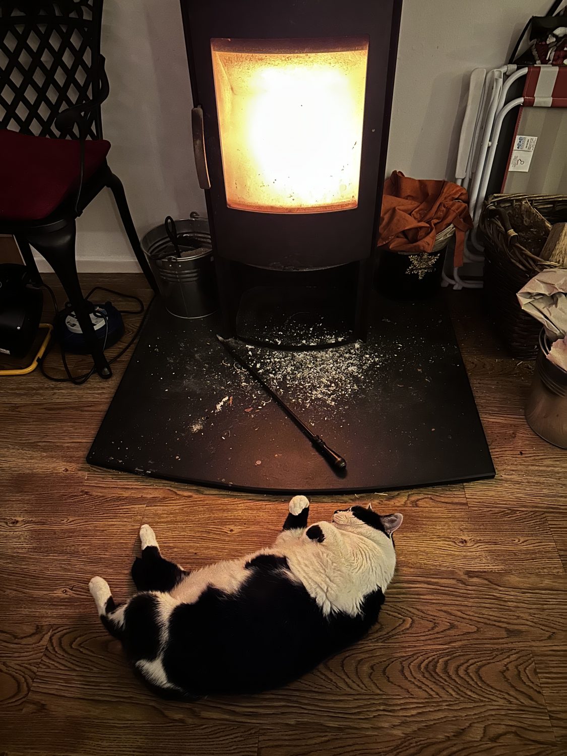And so here’s a picture of Carly the Cat in front of the fire. His happy place!